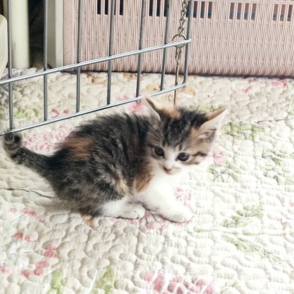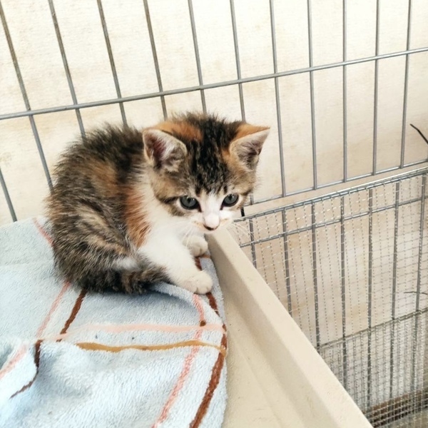| 特徴(性格など) | 白キジ三毛の子猫、りかちゃん。 ふわっふわの毛並みがかわいい女の子です。 りかちゃんを温かく迎えてくださる方を探しています。 当団体のホームページや他のサイトでも同時に募集を行っています。少しでも気になられましたら、どうぞお早めにお問い合わせくださいね。 |