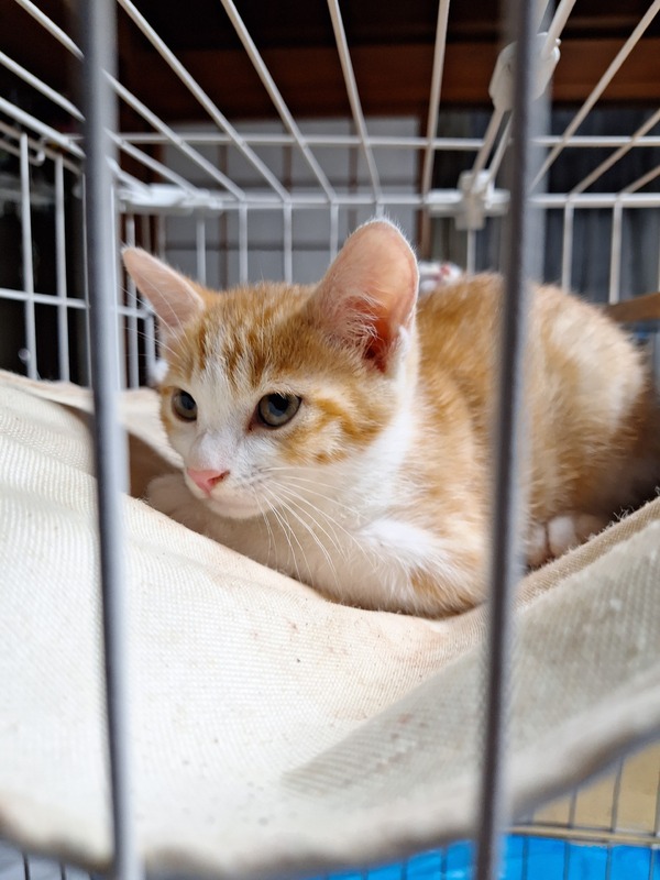 | 特徴(性格など) | 茶トラでシッポが他の子猫達より短いです。小顔でなかなかイケメンです。たぶんオスと思いますが間違っていたらごめんなさい! | ||