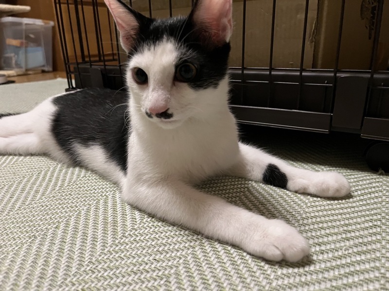 | 特徴(性格など) | ◆ベックスくん 猫が大好きな白黒ハチワレ子猫 ○川崎市内にて、外にいたところを保護されました。 ○生後6ヶ月くらい(2024年10月上旬時点)の白黒の男の子です。 ○しっぽは真っ直ぐです。 ◯猫が大好きで、大人猫にスリスリしに行く姿が可愛いです。 ◯まだ人は恐くシャーシャー言ってしまいますが、攻撃性はなくナデナデさせてくれます。 ◯まだ子猫ですし、これから人にも慣れてくれると思います。 ○元気にすくすく育っています。 ★ワクチン2回接種済み。不妊手術済み。 ★猫エイズ、猫白血病ともに陰性。 ☆単身のかたはご相談ください。 ○YouTubeにも動画を上げています。こちらもご覧下さい。 「ベックス」 https://youtu.be/bZhhe2zVV_w ☆★☆★☆★☆★☆★☆★☆★☆★☆★☆★☆★☆★☆ ~10月20日(日)市ヶ尾にて譲渡会開催!~ ◎場所・・「東急ドエル市ヶ尾プラーザビル2階集会場」 神奈川県横浜市青葉区市ヶ尾町1154-2 田園都市線「市ヶ尾」駅西口より徒歩約2分 ◎日程・・10月20日(日)(雨天決行) ◎時間・・13時から16時(受付は15時30分まで) (会場に利用可能な駐車場はございません。近隣のコインパーキングをご利用ください。) *12時45分より入場ご案内を致します。それより早く来て並ぶ事はご遠慮下さい。 *参加の際は、アルコール消毒のご協力をお願いいたします。 *混雑状況により、入場制限をさせていただく場合がございます。 ※参加予定の犬猫は体調により参加できない場合があります。ご了承ください。 ☆★☆★☆★☆★☆★☆★☆★☆★☆★☆★☆★☆★☆ |