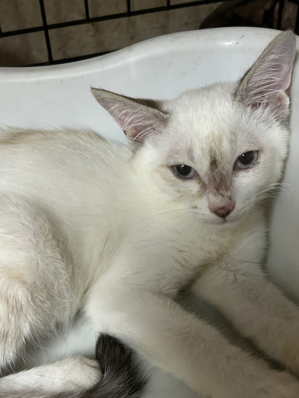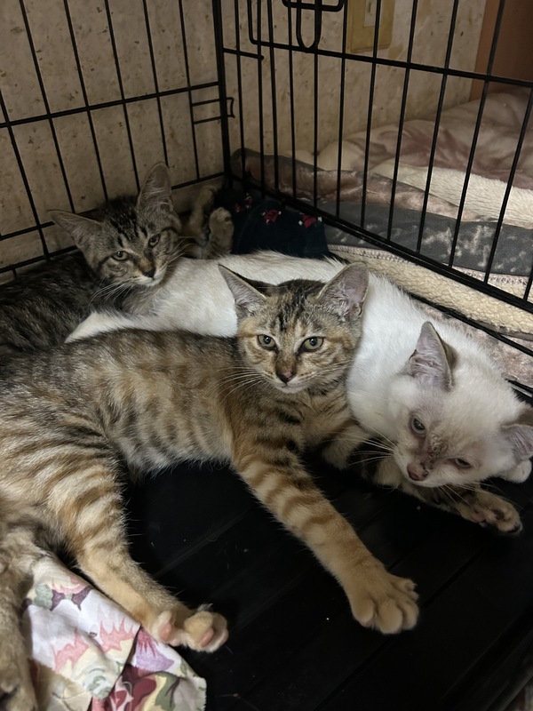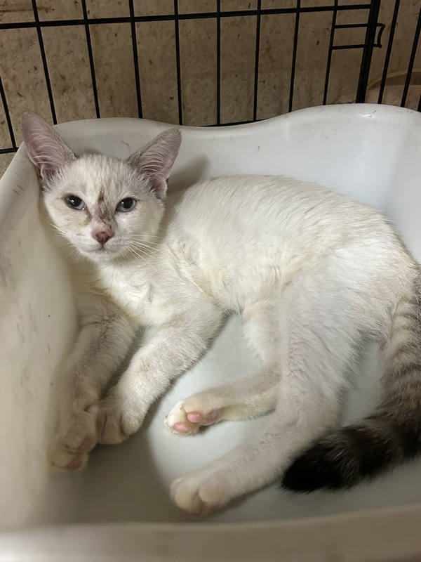 | 特徴(性格など) | 深夜の捕獲作戦でようやく保護できた3姉妹(雨、梅、夏)です。 野良育ちで苦労し、人間を怖がり、威嚇もしますが まだまだビビりさんです。 猫パンチはなく、抱っこも可能です。 耳、しっぽがベージュ色のシャム系美猫さんです。 |