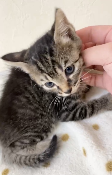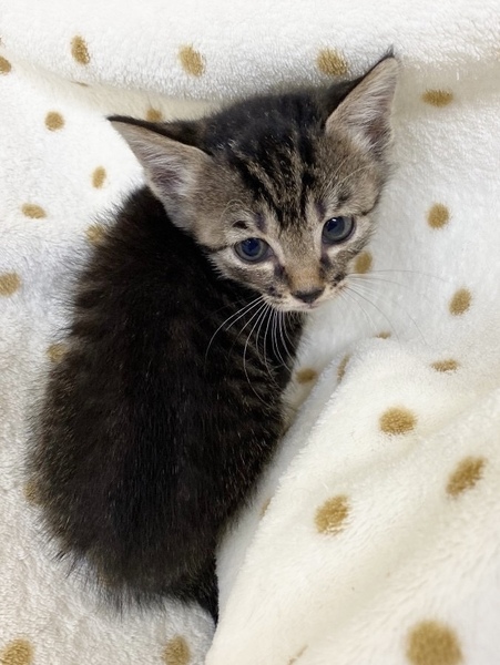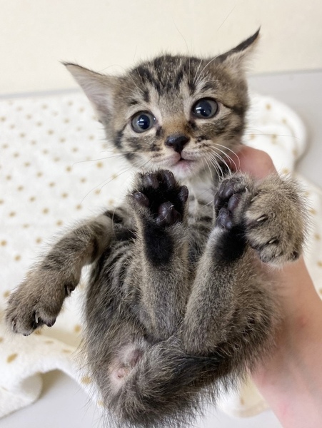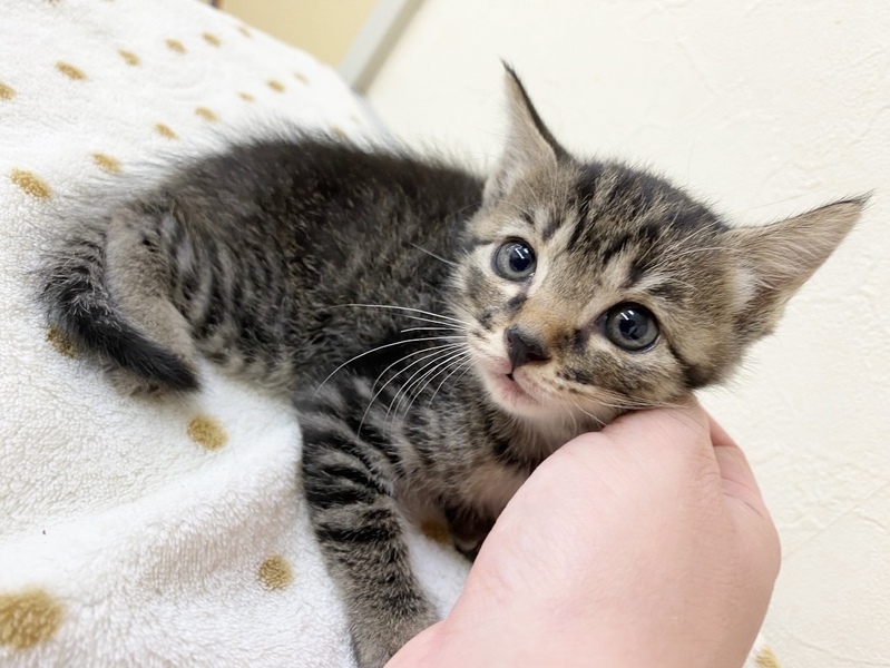 | 特徴(性格など) | ✳︎特徴 王道のキジトラさんなので、お顔が可愛い中にもキリッと感があります。お顔、手足は綺麗なタビー(縞模様)が出ていますが、背中側は黒がやや多めです。尻尾はまっすぐです まだ1ヶ月経っていないので、体型はまだまだ赤ちゃん感が満載です。全体的なフォルムがぬいぐるみみたいにコロンっとしていて、これがまた可愛いです! ✳︎性格 まだ月齢が幼いので、人見知りも場所見知りもない段階です。兄弟一緒に保護されてずっと一緒に生活していますので、センター内でも不安がる様子もなく安心して過ごしております。 甘えん坊さんで抱っこが好きというか、スキンシップが大好き!可愛いお写真を撮ろうとしても、遊んでー!抱っこしてー!と、とにかく甘えて近づいてくるのでなかなかいいお写真が撮れないー!と職員さんを困らせるタルトくん(仮名)なのでした(笑)おかげで似たようなショットばかりになってしまいました。 健康状態 保護時はかなり衰弱していたそうです。状態が安定するまで、夜はセンター職員さんが順番に自宅に連れて帰ってお世話をしてくれていたそうです。現在は良好です。食欲、便ともに問題ないそうです。今は推定3週間でまだ1ヶ月たっていないそうで、離乳食に移行したばかりです。状況を見て少しずつドライの練習をしていきますが、トライアル時はまだ離乳食の可能性があります。ご了承ください。食べられるものが少しずつ広がっていく成長の姿も楽しんでいただけると幸いです。ワクチンはまだ母子免疫が残っている月齢ですので接種していません。体重が1キロを超えてからお願いしております。血液検査はまだ小さくて針が刺せないため、もう少し大きくなってから実施予定です。 これから4ヶ月くらいまでの間は、子猫さんの社会性が育つ時期になります。取っ組み合いの喧嘩をしながら、甘噛みを覚えたり、追いかけっこしながら、動体視力を養っていきます。 仲良しの兄妹とずっと一緒に過ごしております。できれば、2頭一緒に迎えてくださるお宅や一緒に遊べる若い先住猫さんがいるお宅、お留守番があまり長くなく猫さんと一緒に遊ぶ時間が十分取れるお宅を優先させていただきたいと考えております。 どうぞよろしくお願いいたします。 |