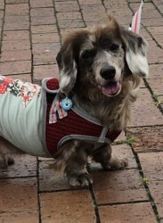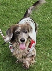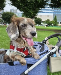 | 特徴(性格など) | ■特徴(仮の名前 タナト) Mダックス ♂ チョコダップル 推定5~6歳 体重8.0キロ ■性格・暮らし ・人が大好きで、元気いっぱいな甘え上手です。 ・ケージでのお留守番、就寝ができます。 ・トイレシートでの排泄は現在練習中ですが、屋内外で排泄はできます。 ・車酔いはなく、車中も良い子です。 ・対人対犬とも問題ありませんが、他犬には興奮してしまうことがありますのでお散歩時には注意が必要です。 ・攻撃性は全くなく、身体のどこを触っても問題ありません。 ■今までに行った医療措置 ・6種混合ワクチン (6/27) ・検便 (7/3) ・マイクロチップ挿入 (7/3) ・フィラリア抗原検査 陰性 (7/3) ・血液検査 (7/18) ・去勢手術 (7/18) ・歯科処置 (7/18) ■今後、行う予定の医療行為 ・狂犬病予防接種 |