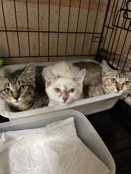 | 里親募集する理由 | 餌やりはされるが 避妊去勢はご理解いただけない方がおられる地域で アパート周辺に猫が増え続けてしまいました。 子猫は捕獲し里親募集にする事になりました。 深夜の捕獲作戦でようやく保護できた3姉妹(雨、梅、夏)です。 |