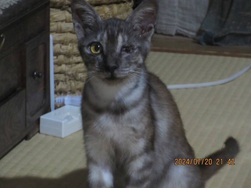 | 特徴(性格など) | 色はグレー、茶、白で柄は縞のようなサビのような曖昧な柄です。 あまり見ない色柄かと思います。 生後7、8か月くらいかと思います。 左目はありませんが生活には支障ありません。 他の猫とも普通に遊べています。 性格はおとなしいです。 食欲、元気あります。 人馴れ、猫馴れしています。 ウイルス検査陰性、検便で寄生虫は出ていません。 ノミダニ駆除済み、トイレしつけ済み。 |