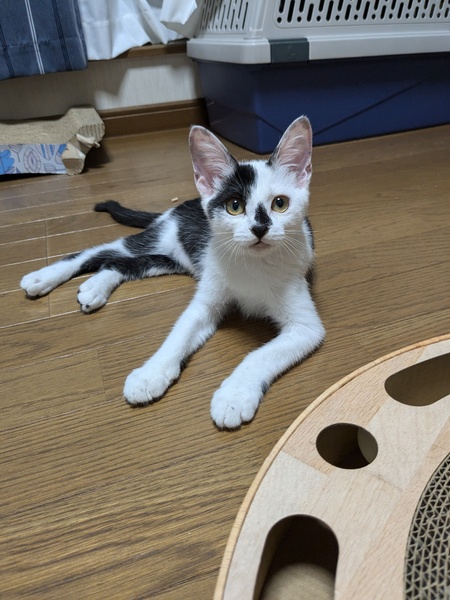 里親募集する理由 | 我が家には少し神経質な先住猫がいるので里親さんを探すことになりました。 2024年7月20日に保護。 猛暑の中、朝から1日自宅の庭をウロウロしていましたが夕方になって座り込んでしまったので保護しました。 ひとり遊びも上手な活発な女の子です。 |