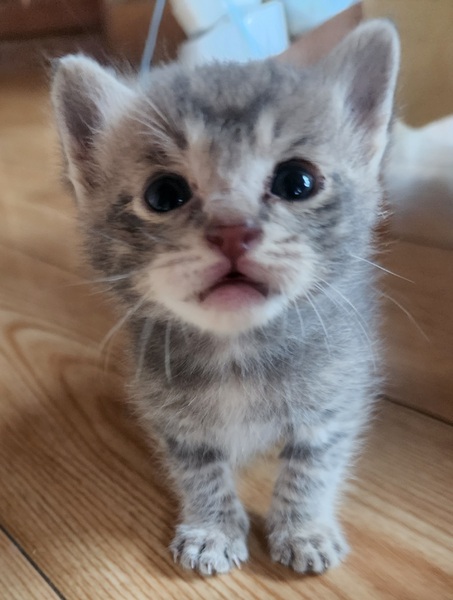 | 特徴(性格など) | 素人目ですが甘えん坊のオス猫です。 トイレは自分で出来ます。 ご飯は離乳食を1日3回に分けて与えています。 |