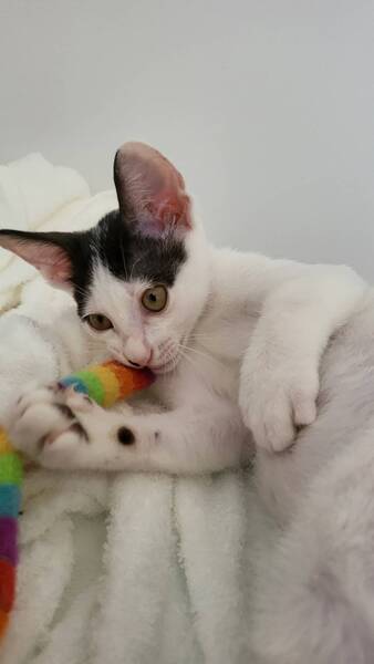 | 特徴(性格など) | ★仮ネーム あおべえ ★性別 男の子 ★月齢(予想誕生日) 5月5日 ★性格 兄弟で一番活発です なんにでも興味を持ち、甘えるのが大好きです トイレも問題有りません 【医療処置】 検便: 済 ノミダニ虫駆除: 済 3種混合ワクチン: 2回目済7月26日 エイズ白血病ウイルス血液検査: 陰性 去勢避妊手術: 未 健康状態: 良好 |