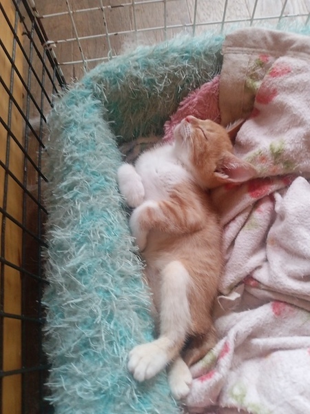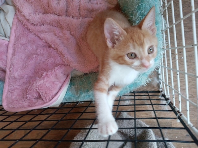 特徴(性格など) | ☆☆☆ご希望の方は、以下のアンケートフォームにご記入の上、送信してください☆☆☆ ねこ親希望アンケート→ http://chibawan.net/contactform_cat 【猫No】3821 【愛称】懐(なつ) 【性別】メス 【年齢】約2ヶ月(24/05/11頃生) 【毛色】茶白 【体重】1.02kg(24/07/25現在) 【状態】両下肢不随・不妊手術(24/08/05予定)・ワクチン2回接種済み(24/07/25)・血液検査(エイズ・白血病共に陰性)・マイクロチップ(24/08/05装着予定)・検便駆虫済・ノミダニ駆除済・トイレ認識なし 【預かり場所】神奈川県三浦郡 【日記】「チビスケんち」(インスタグラム) https://www.instagram.com/chibisukehaha/ 【経緯】千葉県動物愛護センターより引き取り 【性格】人懐っこくてとても素直な可愛い女の子です。 生まれつきか両後ろ足に力が入らず、動かすことはできますが立ち上がることができません。 その為、前足だけを使って移動していますが、走り回る姿は前足だけで移動しているとは思えない速さです。 また、爪がかかる高さであれば高いところにもよじ登ぼるなど、とても活発で元気一杯です。 移動当初から自分より大きな犬猫に囲まれているので他の犬や猫を怖がることもなく、また甲斐甲斐しく面倒を見てくれる子もいるため、誰かがそばに行くだけで嬉しくてゴロゴロ喉を鳴らしたり、他の子の尻尾にじゃれついたりと、天真爛漫そのものでいつも楽しそうに過ごしています。 排泄に関しては刺激を与えることで排尿や排便を促していますが、夢中になって遊んぶうちにお腹に力が入ると漏れてしまうこともあります。 今後、室内トイレを使えるようになるかどうかはまだわかりませんが、使えるようになるとしても通常の猫用トイレでは後ろ足が上がらないためトイレの中に入ることは難しいかもしれません。 入れるようになったとしても出てくる時に猫砂を外に散らかしてしまうと思いますので、現在は猫用トイレではなく、トイレシーツでの排泄ができないか試行錯誤中です。 後ろ足に関しては、仰向けなど足に負荷がかかっていない状態であれば自分でパタパタと動かしていますので、今後、筋力が付くなどすれば多少は踏ん張れる可能性はあると思いますが、この先も後ろ足を前足同様に使って歩いたり走ったり、またジャンプしたりということは難しいと思われます。 そのような状態の懐(なつ)ですが、障害のことなど気にもせず、いつも楽しそうに遊んだりなんの疑いもなく甘えてくるとても可愛い子です。 このような状態の懐のすべてを、丸ごと懐の個性と思っていただける方とのご縁を心からお待ちしております。 【その他】愛情いっぱいの終生飼養、完全室内飼育、細心の脱走防止対策、定期的なワクチン接種などの健康管理、定期的な近況報告をお約束いただける神奈川県近郊のお留守番の少ないご家族で、アンケートに快くお答えいただける方からのお問い合わせを心よりお待ちしております。 |