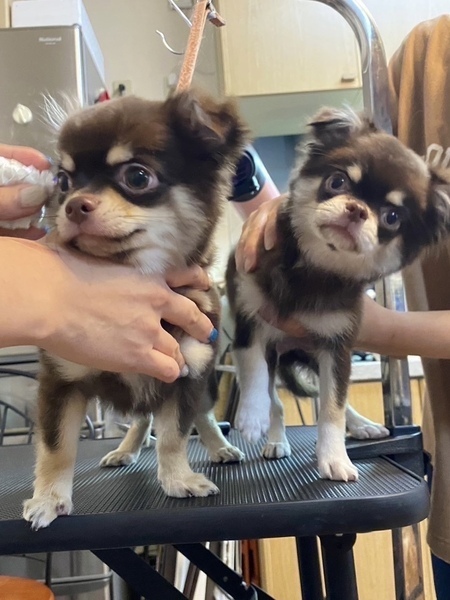 | 特徴(性格など) | 性別:オス 犬種:チワワ 毛色:チョコレートタン&ホワイト 年齢: 2024/4/6生まれ 体重: 1.8キロ 性格:フレンドリー トイレ: トレーニング中 散歩: 外慣れで抱っこお散歩からのトレーニング中 日常の様子:他の犬猫と遊んだりして元気いっぱいに過ごしています。人も大好きですが、抱っこ慣れはしていないです。 お手入れ:毎月のトリミング・毎日のブラッシング・歯磨き・耳掃除・涙やけケアなど ※トリミング犬種ではないので、サマーカットなど短くはしないでください。必ず毎月1回サロンで可愛く清潔にして頂ける方、それだけの経済的余裕がある方を希望します フード: アカナパピー&ロイヤルカナンパピーの半々に混ぜて、缶詰などのトッピング 健康状態 フィラリア:陰性 ワクチン:5種混合ワクチン済み マイクロチップ:済み 避妊・去勢:適正な時期にお願いします。 その他:触診・聴診・血液検査・検便、異常なし、駆虫薬投与・ノミダニ駆除済み・スケーリング済み ★特記所見:斜頸がありますが、現在問題なく過ごしています。 去勢の時にMRIも一緒にして頂ける方希望(出来れば市ヶ谷医療センターにて) ★兄弟2匹でお迎えして頂ける方希望 |