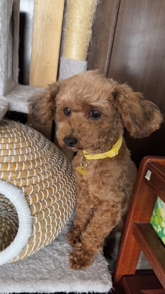 | 特徴(性格など) | ♡.*・゚┈┈┈┈┈┈┈┈┈┈┈゚・*.♡ 名前 ローラ 種類 トイプードル 色 レッド 年齢 推定5歳 性別 メス 体重 2.6kg 経緯 廃業でブリーダーからの保護 ワクチン 5種混合接種済 フィラリア 陰性(ー) マイクロチップ 装着済 避妊去勢手術 済 メディカルチェック 聴診触診、血液、検便、異常なし 駆虫薬投与、ノミダニ駆除済、スケーリング済 外耳炎、皮膚炎(もうほぼ問題ないと思われます。) ♡.*・゚┈┈┈┈┈┈┈┈┈┈┈゚・*.♡ ♥人懐っこく推定年齢は5歳ですが、子犬のようにやんちゃな感じの子です。しっぽをたくさん振ってくれます。とにかく甘えん坊で抱っこをされているのが大好きです。おもちゃにはあまり興味がなく、人にかまってもらいたくてたまらない子です。 ♥ ご飯の前や部屋から人がいなくなると、寂しいのか吠えます。長時間しつこく吠えたりはしませんが、少しの間遠吠えや吠えはあります。鳴き声は高めの声で大きいです。低いサークルだと人がいない時に脱走しようとします。 ♥ご飯大好きで待ちきれず吠えます。ご飯をあげた時もしっぽをフリフリしながら食べています。ペロリと完食します。 ♥お散歩大好きでクン活をよくします。マーキングして歩きます。ダッシュで走ることも多いです。人にも犬にも興味を示します。人にも犬にも吠えることがありますが、他犬に近づいた時はご挨拶が出来ています。最近は自己主張をして行きたい方に行けなかったり、匂いを嗅ぎたいところがあると伏せやお座りをして歩かなくなる時があります。夕方~夜の暗い時間でも問題なく歩いてくれます。猫には興味がないようです。 ♥お出かけは長時間でも車酔いはなさそうです。カートも最初は少し興奮しますが、落ち着けば座って乗っていられます。知らない場所でもすぐに歩けました。 ♥お風呂は静かに入れます。(動き回っているので、水にそこまで恐怖心がなさそうです。)ドライヤーは好きではなさそうですが、問題なくお手入れ出来ます。 ♥トイレはまだトレーニング中です。サークル内では大体決まった場所で出来ます。お部屋でフリー時はトイレに戻って排泄する事が多くなってきました。時々失敗してしまうこともありますが、以前よりだいぶ覚えてきたように思えます。排泄物は早めに取らないと食糞します。 ♥歯磨きは苦手ですが歯ブラシで練習しています。 ♥ 外耳炎・皮膚炎がありましたが、もう問題ないと思われます。耳のお手入れは嫌がらずやらせてくれる子です。 日常の様子はInstagramでご覧ください。 https://instagram.com/linkplus_wan.nyan?igshid=YmMyMTA2M2Y= |