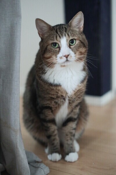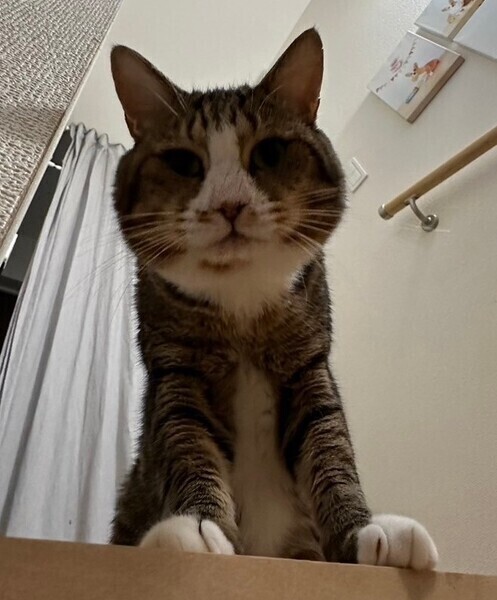 | 特徴(性格など) | 仮名:ごんちゃん(推定2017年生まれ) 食欲旺盛、おもちゃをたしなみ顔の大きさのわりにスラッとしたボディと短い足が魅力です♪ たまに凄い近くで寝てくれたり、ご飯の催促でかわいい声を聞くことができます。 ツンデレのデレを開拓するのが好き。野良気質が好きという方には最高にかわいい子です。 |