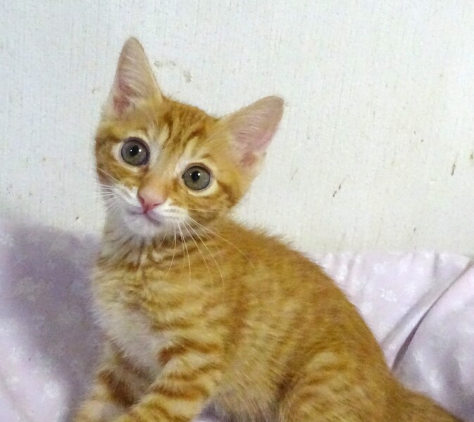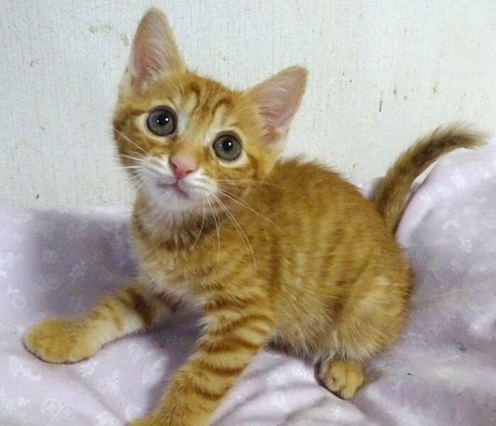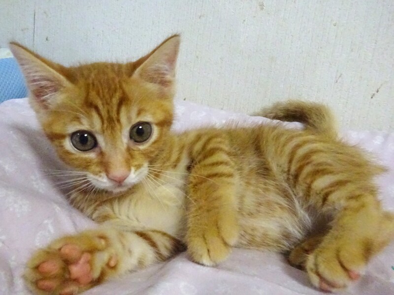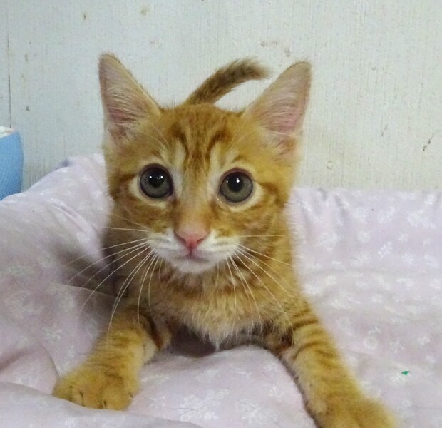 | 特徴(性格など) | 仮名: カラシくん、オス 毛色: チャトラ、口元に少し白あり。 尻尾長い 性格: 人馴れはしている方です。 4兄弟は3匹がオスですが、大きい方です。ケージに近づいたりするとすぐ出てきてスリスリしますので、撫でると尻尾をピンとたてて、そのうち背中にくっつく位倒します。 もっとじっくり付き合ったら、とても甘えん坊になると思います。 兄弟(ミソちゃん、ミリンくん、コウジくん)のうちのだれかと一緒だと嬉しいですが、別々でも構いません。 大人猫と付き合えるかはわかっていませんが、優しい先住猫がいても大丈夫だと思います。 甘えん坊予備軍なので、留守番の多いお家よりも家族と一緒にいる時間の長いお家が良いと思います。 お届けは千葉県で、車で1時間圏内を希望しています。 検便済 駆虫済 3種混合ワクチン済 猫エイズ・白血病ウィルス検査はともに陰性です |