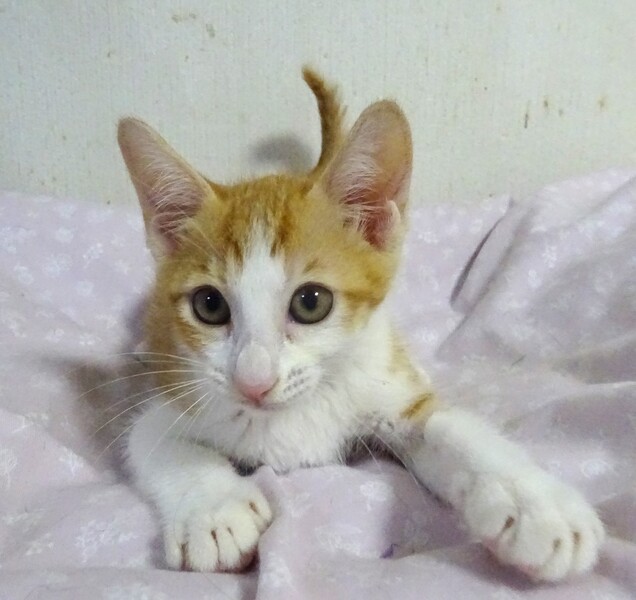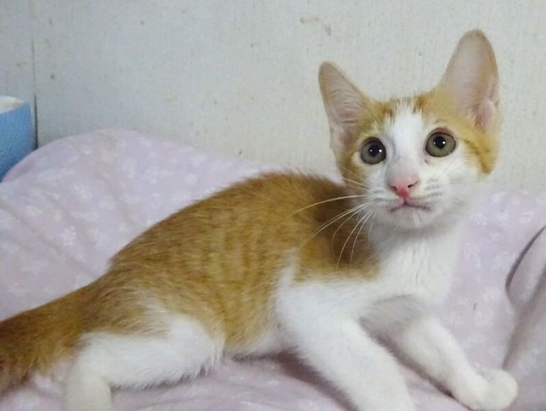 | 特徴(性格など) | 仮名: ミソちゃん、メス 毛色: 茶白、尻尾長い 性格: 4兄弟の中では一番怖がりのほうですが、ご飯の時はちゃんとケージの前まで出てくるし、触るとスリスリしたりはします。 他の子が懐っこいほうなので比べてしまうのかもしれません。 兄弟(ミリン君、カラシ君、コウジ君)とは仲良しなので、そのうちの誰かと一緒だと嬉しいですが、別々でも構いません。威嚇なく抱っこしたり、触ったり出来、爪切りや薬も大丈夫です。 お尻トントンすると尻尾をピンとたてて喜んでくれます。 留守番時間があまり長くなく、さびしくないお家のほうが良いかなと思います。 お届けは千葉県で、車で1時間圏内を希望します。 検便済 駆虫済 3種混合ワクチン済 猫エイズ・白血病ウィルス検査はともに陰性です |