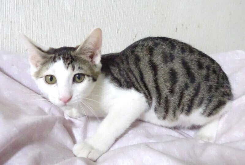 | 特徴(性格など) | 仮名: 鈴ちゃん、メス 毛色: キジ白 性格: 保護時は両目が酷く、見えなくなってもおかしくない状態でしたので、周りが良くみえず、不安なまま目の治療をされたので、少し怖かったようです。 人馴れもしないうちに病院やら治療やらで、人馴れが遅くなりましたが、目が見えるにつれ、活発に遊ぶようになりました。 今は目が綺麗になり良く見えているので、プロレスしたり追いかけっこしたり、良く遊びます。 兄弟と一緒の募集をしたいのですが、まだ目が治っていない子が多いので、一人での募集となります。 捕まえる時に目薬だと思うのか一旦逃げますが、簡単に捕まり、威嚇なく抱っこ出来ます。 お届けは千葉県内で、車で1時間圏内を希望します。 検便済 駆虫済 3種混合ワクチン済 避妊手術済 猫エイズ・白血病ウィルス検査はともに陰性です |