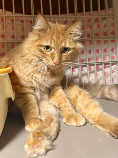 | 特徴(性格など) | 仮名を琉(りゅう)と言います。 センター収容です。 ゴージャスな立て髪とフサフサの尻尾が神秘的★ 普段は無口でクールな琉ですが、見た目とは裏腹に子煩悩な一面も♡ 琉の仔ではないのですが、同室の仔猫「みつぎ」の面倒をよくみてくれる、まるで保父さんのような存在です。 手足は太めで、骨格もしっかりしていますが、大型までではありません。 琉は交通事故に遭ってしまい、起立不能な状態でセンターに収容されました。 ある日突然、今までの日常が一変してしまった琉。 当時はとても怯えていました。 少し後肢に後遺症が残ってしまいましたが、今では室内での日常生活、ほとんど支障なく過ごせています。 頑張った琉への最高のご褒美は、やっぱり家族ができること、苗字を持てること。 我が仔のように思っている?!みつぎと一緒なら、この上なく幸せですが、とにかく琉の、おとな猫の、面倒見のいい男の仔の、愛らしさを知ってほしいです。 ぜひぜひ会いに来てください。 【医療処置情報】これから実施のも含まれます *健康チェック *3種混合ワクチン接種 (年1回定期的にしております。詳細はお見合い時にお知らせいたします) *ウイルス検査実施(FIV.FeLV共に陰性) *検便実施 *駆虫薬投与(レボリューション、ドロンタール) *マイクロチップ装着 *不妊・去勢手術 |