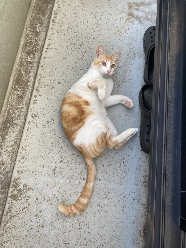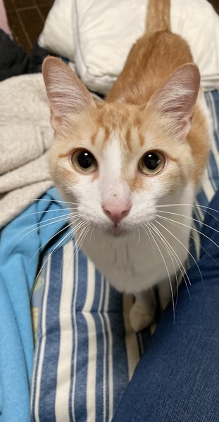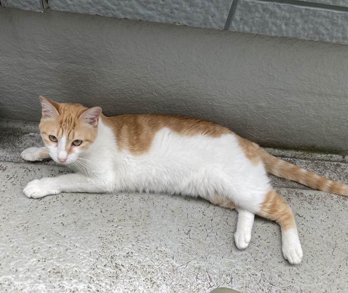 | 特徴(性格など) | アメショ風のグルグル縞模様が入った茶白猫。 尻尾は長くてまっすぐ。 最初は人見知りでかなりのビビりな慎重派ですが馴れるとベタベタの甘えん坊。 可愛い鳴き声でピャーと鳴きます。 オシッコの粗相がありましたがトイレを増やして解決しました。 トイレが汚いのがきらいな様です。 布物があるとオシッコするので要注意です。 同じお母さんから生まれたミケの姉妹と仲良く一緒に遊びます。 仲が良いのでミケの姉妹と一緒に里子に迎えてくれるのを希望します。 |