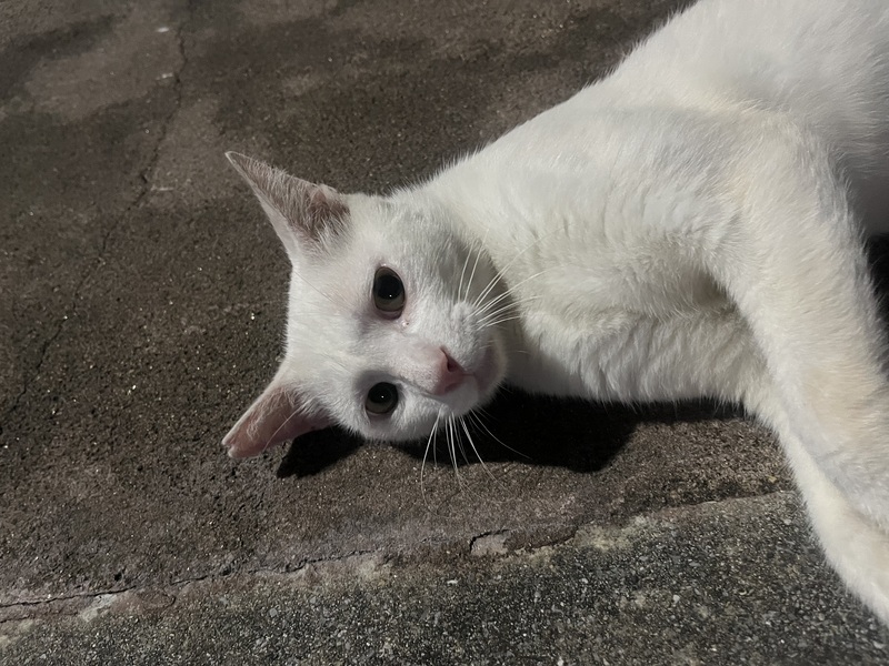 | 特徴(性格など) | 賢くて甘えん坊な白猫です。とても人慣れしており、噛んだり引っ掻いたりもしない優しい子です。 | ||
