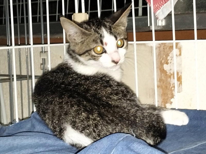 | 特徴(性格など) | キジ・白 しっぽ半分 健康で元気です。 先に保護された兄弟達が譲渡されてからの保護となり、少々の警戒心がありましたが、だんだん緩和され今は抱っこできます。 |