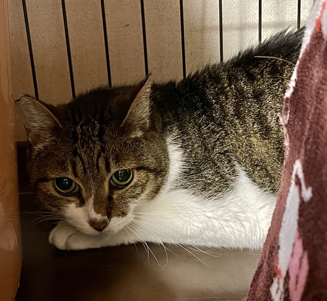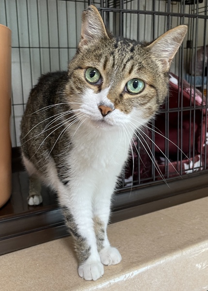 | 特徴(性格など) | 瞳の色:グリーン 尻尾:長めで一見まっすぐに見えますが、触ると少しガタガタしています。 体重:4.4kg(8月29日現在) 性格・特徴:大きなお顔でぽっちゃりの癒し系なモモくん。 保護後しばらくは怯えていましたが、人に対しては最初から威嚇や攻撃はありませんでした。 2、3日もすると、撫でるとゴロゴロと喜んでくれるように。 1週間後には名前を呼ぶと「よっこらしょ」と腰を上げ、寄って来てくれるようになりました。 ただ、立ち上がるとまだ怖いようで、少し離れてこちらをうかがい、座るとまた近くにやって来る状態でした。 が、1カ月後には私の気配を感じると保護部屋のドアの前で待ち構えていて、床に座るとすぐにやって来ておヒザ抱っこをするまでに懐きました。 一生懸命に顔を覗き込んで、鼻やアゴにチューしてくれます。 構わずにいるとアゴを甘噛みして、ナデナデを催促されることもあります。 コスプレも嫌がらずにさせてくれ、「モモちゃんカッコいい!!」とおだてると、まんざらでもない様子です。 映え写真もたくさん撮れると思います。 根っからの甘えん坊さんなので、早く本当のおうちでかわいがってもらえるよう願っています。 ほかの猫に対しては最初のうち、相手に威嚇されると威嚇し返したり、人に甘えている時にほかの猫が近くに来るとやきもちからかパンチを繰り出したりしていました。 が、1週間ほどすると威嚇やパンチは出なくなり、お鼻をくっつけてあいさつできるようになりました。 特別猫好きというわけではなく、お留守番もできるので、1匹飼いでも大丈夫です。 また、先住猫さんがいるお宅でも、攻撃的な子でなければ時間をかけて仲良くなれると思います。 システムトイレも固まる砂のトイレも問題なく使っています。 右耳に桜カットあり。 猫白血病、猫免疫不全ウイルスともに陰性。 血液検査でBNPの軽度上昇が見られましたが、心臓疾患はありませんでした。 年齢的にこのくらいのちょっとした不調はみんな持っているものというレベルだそうですが、念のため経過観察をお願いします。 ノミ・ダニ・お腹の虫の駆除済み。 |
