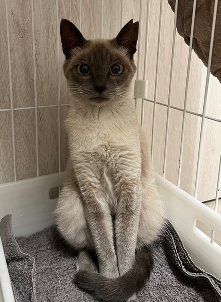 | 特徴(性格など) | 毛色:シャムミックス 性格:とても人懐っこく、抱っこ、撫でられるのが大好き。爪切りもできます。 体重:約2キロ マイクロチップ装着: 未 飼養環境制限: 室内のみ 単身応募者: 条件あり 高齢応募者:否 初期医療処置: ワクチン接種1回済み(2024.7.26) 注意事項・その他:甘えん坊な性格なので、留守番時間が短いご家庭に迎えていただきたいです。 |