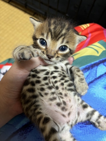 | その他(譲渡条件など) | 当方、ボランティアさんの代理で里親募集をしています。レスポンスが遅くなる時もありますが必ずご返信いたします。 ブリーダーさんをしていた方の猫ちゃんなので親は純血のベンガルで血統書もあります。 故に繁殖目的の方は固くお断りします。 廃業でかなりの猫ちゃんを預り保護をしていてこの後も妊娠している猫ちゃんがいるので全ての猫ちゃんが良い里親さんが見つかれば良いなと願い募集をこの度しています(*^^*) よろしくお願いいたします? |