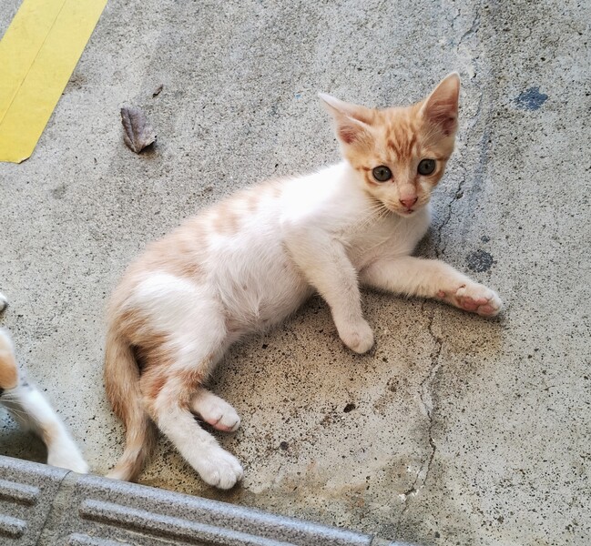 | 特徴(性格など) | 白茶トラ柄の元気な男の子です。 3兄妹のうちの1匹です。 今も外で暮らしている野良の子猫です。 性格は少しビビりですが、毎日ごはんをあげてたら、ちょっとずつ慣れてきて、撫でられるようになりました。 兄妹の中で一番食いしん坊です。 外に猫用トイレを置いたら使ってくれました。 私とおもちゃで遊んだり、姉妹猫達と一緒に元気に遊んでいます。 |