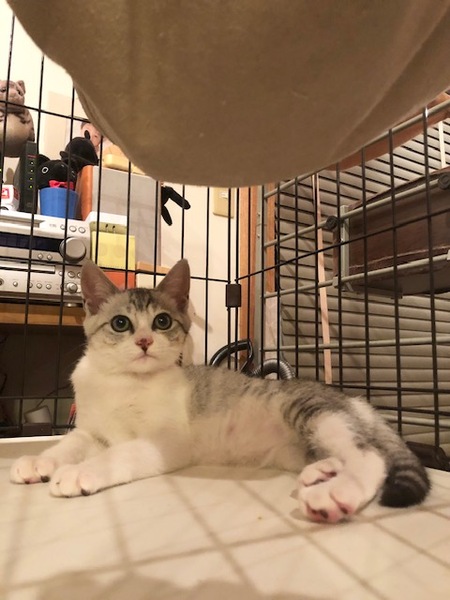 | 里親募集する理由 | 大雨の日に庭に現れました。 母猫も兄弟猫もいない感じでしたので、保護しました。 *気になる方は見学にお越しくださいね~。 |
