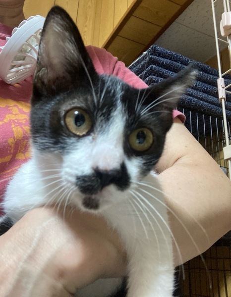 | 特徴(性格など) | 白黒ハチワレ。鼻にチョビひげ柄がチャームポイント。 少しやんちゃっ子でおもちゃで遊ぶのが大好き。 慣れるとゴロゴロスリスリ甘えてくれます。 |