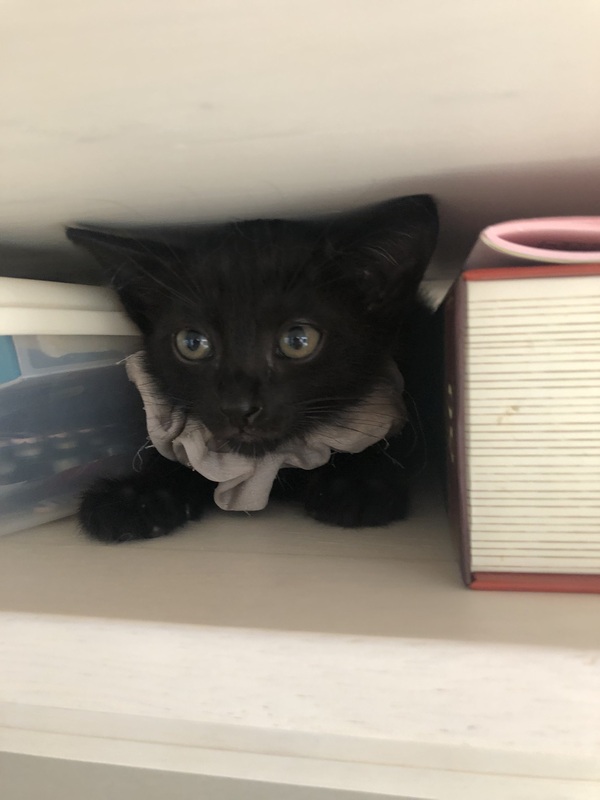 | 特徴(性格など) | 黒猫兄弟のうちの1匹です。 比較的おとなしい子で、よく1匹だけ離れてぼーっとしてたり寝てたりします。もちろん活発に動き回っていることもあります。 お胸のところにやや白い毛が混じっているのが特徴です。 |