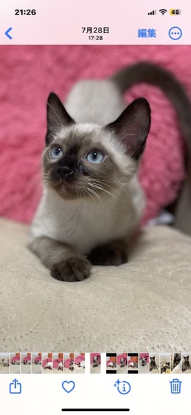 | 里親募集する理由 | 里親募集種類 外にいるところを保護した(TNR中の保護含む) 募集経緯 5月27日に180グラム位で保護した、生後約2ヶ月半のシャム猫柄のミックス猫です。兄弟は先にトライアルが決まりました。あめくんにもずっとのおうち大募集中です。 |