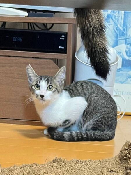 | 特徴(性格など) | 保護からまだ日が浅く、まだまだビビリですが本来は甘えん坊だろう片鱗は見られます。猫同士でも仲良く過ごしてます 長い尻尾のわくくん仮名 |