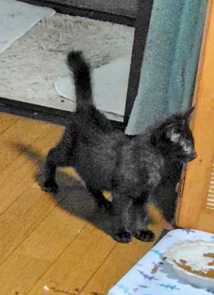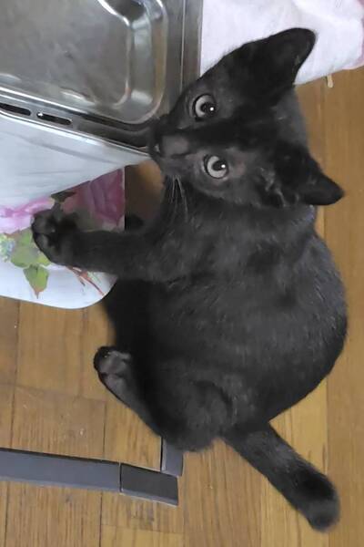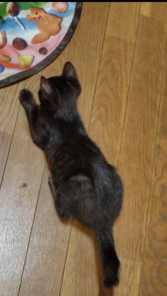 | 特徴(性格など) | 全身黒柄の女の子です 保護された時は警戒をしていましたが、今ではナデナデも抱っこもできます 他の兄弟より活発で、最初は男の子かと思いました かぎしっぽを立てて走る姿が、旗を立てているようでカッコ良いです |