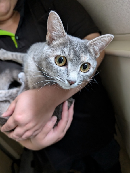 | 特徴(性格など) | 【仮名】蒼(あお)ちゃん 【外見】パステルサビ柄、しっぽは長い 【性格】赤ちゃんの時から人間の家の中なので完璧な人なれ。素直な甘えん坊。。 【しつけ】トイレしつけ済 |