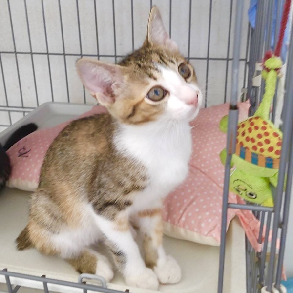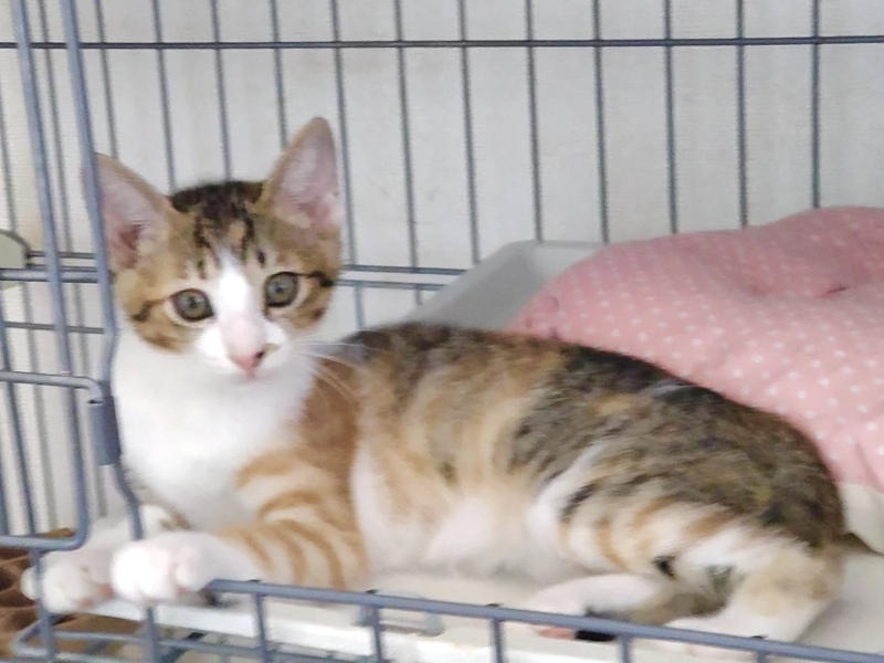 | 特徴(性格など) | 三毛猫のパンダちゃん。 キジ白と茶トラが混ざったようなおしゃれな毛柄がチャームポイントです。 好奇心旺盛で、おもちゃを見せると一生懸命遊びます。 かわいいパンダちゃんを温かく迎えてくださる方を探しています! 当団体のホームページや他のサイトでも同時に募集を行っています。少しでも気になられましたら、どうぞお早めにお問い合わせくださいね。 |