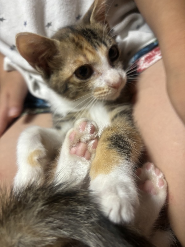 | 特徴(性格など) | とってもやんちゃで甘えん坊な三毛猫の女の子です。 | ||
