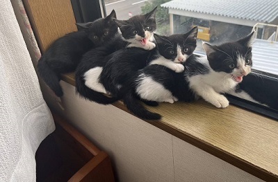 | 里親募集する理由 | TNR依頼の現場に現れた4姉妹でです 猛暑もあり保護しました 2匹は依頼主さんが飼うことになりました 母猫は手術をし、リリースしました |