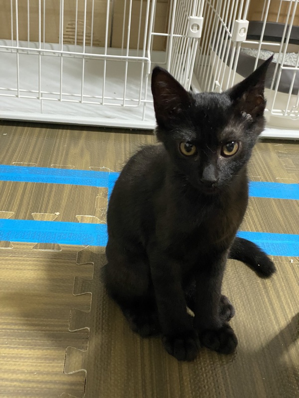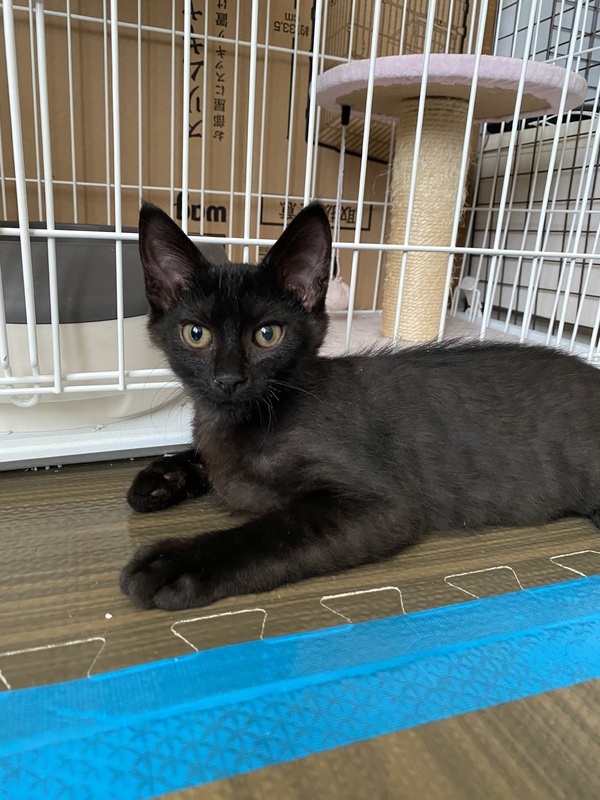 | 特徴(性格など) | 黒猫ですが、薄く柄があるような感じに見える子です。 ちょっぴり怖がりですが、撫でるとゴロゴロと喉を鳴らしてくれます。 |