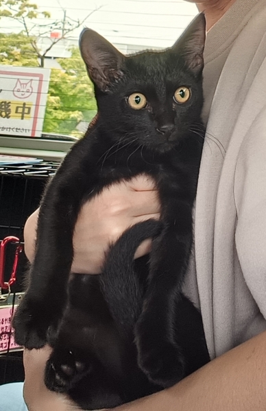 | 特徴(性格など) | イケメン君で元気に兄弟黒猫と良く遊び、カリカリも良く食べます。赤ちゃんの頃は兄弟猫が4匹居たためとてもお利口で本気噛みもされたことがありません。トイレの躾も済んでます。人が大好きで懐っこいです。保護時からシャーされた事が1度もありません♪ | ||
