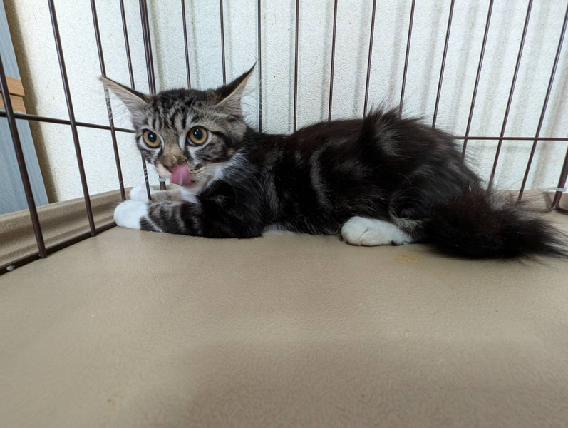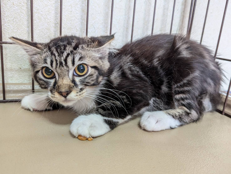| 特徴(性格など) | 空き家で兄弟のシュロくんと過ごしていました。 チュールが大好きです。 威嚇してシャーと言いますが撫でさせてくれます。最初は怖がってシュロの後ろにずっと隠れていましたが、少しずつ落ち着いてきました。人馴れ訓練中です。 |