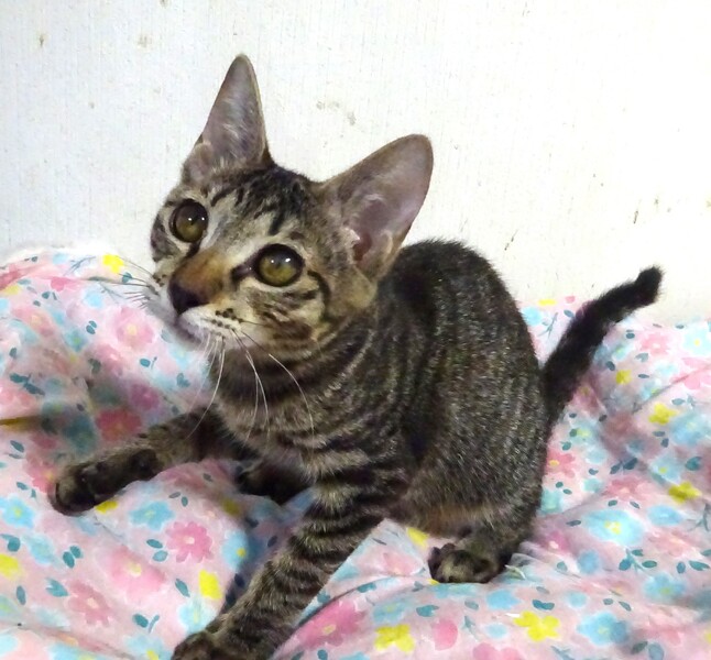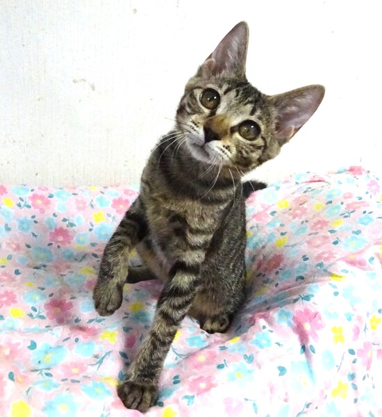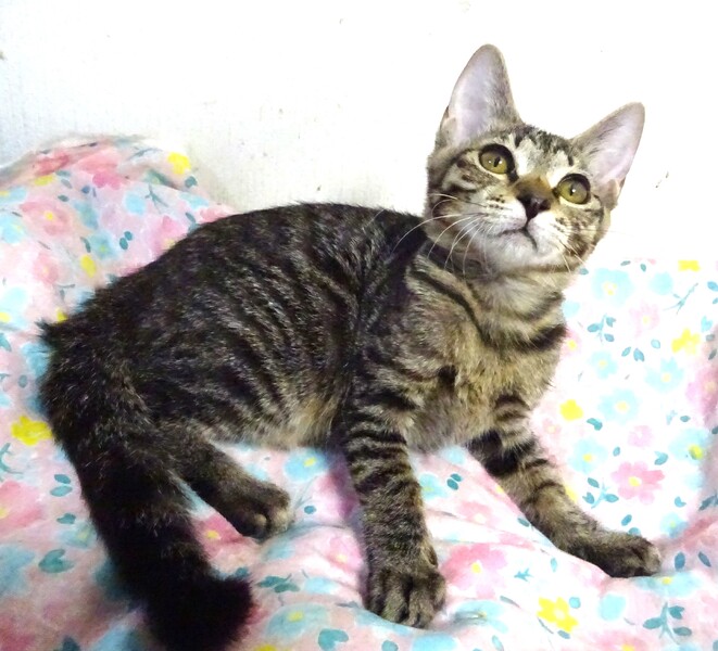 | 特徴(性格など) | 仮名: 和花ちゃん、メス 毛色: サバトラ、尻尾長い 性格: 大人しい方で、ケージに近づくだけで騒いで近寄ってきますが、薬だと思うと逃げたりします。頭も良く、少し怖がりのところもあります。威嚇なく、攻撃性もなく、抱っこ出来ますが、目薬をつけていた時期が長いので警戒したりします。 目薬は嫌いみたいです。長い風邪の為、うっすらと角膜に濁りがありますが、殆どわからない感じです。 ご理解頂けると嬉しいです。 兄弟の翔くんと一緒だと嬉しいですが、模様も同じなので別々でもかまいません。 お届けは千葉県内で、車で1時間位を希望します。 検便済 駆虫済 3種混合ワクチン済 猫エイズ・白血病ウィルス検査はともに陰性です |