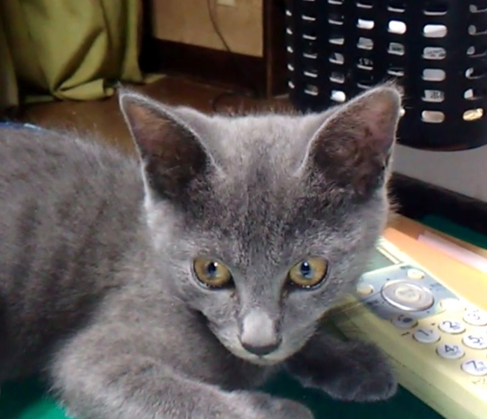 | 特徴(性格など) | 両親または片親がロシアンブルーだと思われます。 綺麗な毛色です。毛を触るととても柔らかく気持ちが良いです。 捨てられたショックの為か最初はピリピリしていましたが、今はすっかり元気になりました。 ロシアンブルーによくある、飼い主にとてもよく懐く性格のようです。 他の保護猫とはあまり馴染めませんでしたが、同時募集のキジくんには懷き、よく一緒に遊びます。(動画を顎参照下さい。) 甘えん坊で少しわがままです。 贅沢でドライフードはなかなか食べませんでしたが、最近は何でも食べるようになりました。ウエットフード、チュールは大好きです。 とても賢く、よくおしゃべりします。表情が豊かでまるで人の子のようです。 なでられたり、抱っこされるのが大好きです。 |