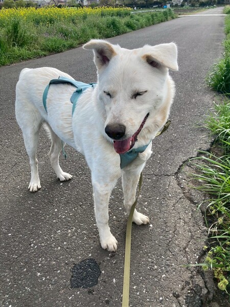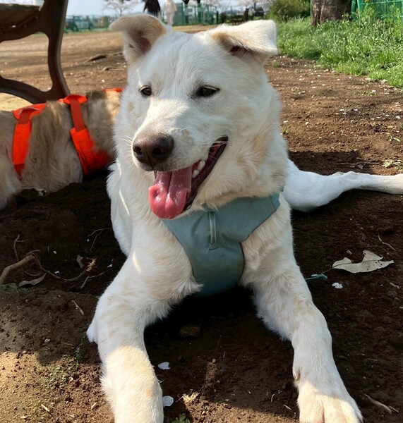 | 特徴(性格など) | ・名前 なると ・性別 ♂ ・年齢 2024.7.1生まれ ・体重 23.3キロ(2025/4/28現在) ・首周り40cm 体長65cm 体高58cm ☆性格 やんちゃで、褒められるのが好きな甘えん坊、寂しがり屋、穴掘り、おもちゃ遊び、ドッグランで全力で追いかけっこ、ワンプロが大好きです。 挨拶は上手に出来ますが、時に距離感が近い時があり、グイグイ行く事があり犬社会勉強中です。 ・お留守番 何かをかじったりイタズラをする時もありますが、留守番の前にたっぷり身体を動かしたりすると静かに寝て過ごしていられます。 ・食事やおやつ 1日2回ドライフードをあげています。 朝は食が細く、散歩で沢山身体を動かすと食べ出します。食べムラが若干あります 。肉、魚、歯磨きガムのおやつは大好きです。 ・トイレ 室内でトイレシーツに、外でも出来ます。 水を沢山飲むので排泄回数、量多めです。 ・お散歩 まだまだ色々なものに興味があり興奮して引っ張ったり右往左往する時があります。 現在トレーニング中です。 一対一で歩く時やおやつに注目させたり お散歩中盤からは落ち着いて歩く事も出来ます。 すれ違う犬や鳥、猫を見つけた時、もぐら塚を見つけた時は興奮して引っ張ったり穴を掘ります。 ・就寝スタイル 20時頃には寝ていて、夏は早起きですが冬は朝は遅めに起きます。 ・お風呂やボディーケアなど シャンプーや爪切りは嫌がりますが出来ます。ドライヤーは毛が短めなので手間はかからないかと思います。 ブラッシング、足拭き、耳掃除、ハミガキ出来ます。 ☆8種混合ワクチン3回接種済 ☆去勢済み ☆狂犬病ワクチン接種済 ☆マイクロチップ装着済 ☆お願いしたいこと ・お家の脱走対策、迷子札つきの首輪の 装着(24時間)お散歩の際のダブルリードやGPS装着などにご理解がある方 トライアル前に一緒にお散歩をして頂ける方 ・その他OHANAが定める譲渡条件を理解してくださる方 ☆高齢者 不可 ☆単身者 不可 |