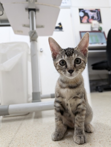 | 特徴(性格など) | ・サビとキジが混じったような不思議な 柄です。 ・とても活発でおてんばです。 ・大変人懐っこく可愛らしい性格です。 ・物怖じせず、大きな猫ちゃんにも 向かって行きます! |
