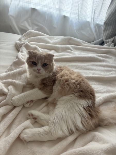 | 特徴(性格など) | カラー:カメオホワイト どこに行くにもついて行く甘えん坊です。 名前を呼べばすぐダッシュで飛んできます。 あまりお喋りはしませんが、とても大人しい子です。 爪切りも嫌がらずさせてくれます。 チュールとササミが大好きです。 |