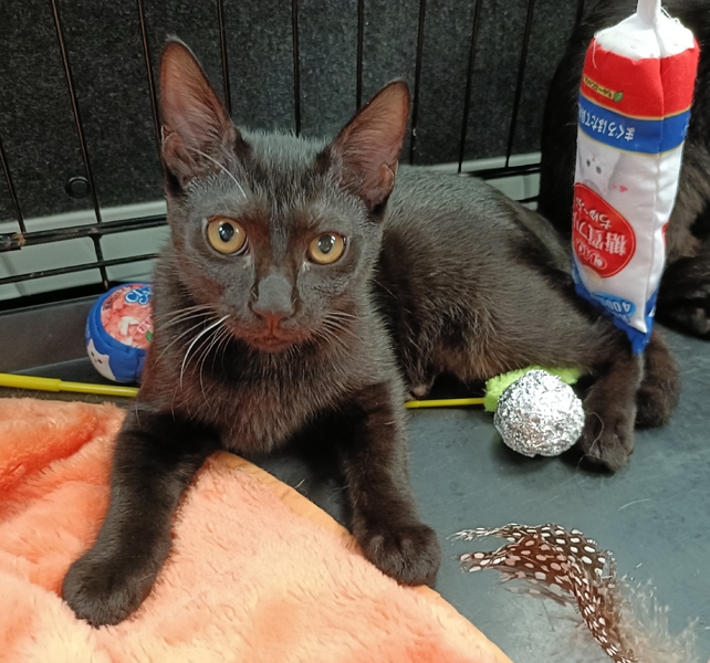 | 里親募集する理由 | 自宅の倉庫で野良猫が子猫を産みましたが高所での出産で子猫が歩くようになると次々落ちて来てしまい母猫はどこかへ…。1週間程様子を見ましたが子猫が弱ってしまい保護しました。ウチには猫嫌いな両親と猫アレルギーの子がいる為飼えませんので里親さんを募集します。 | ||