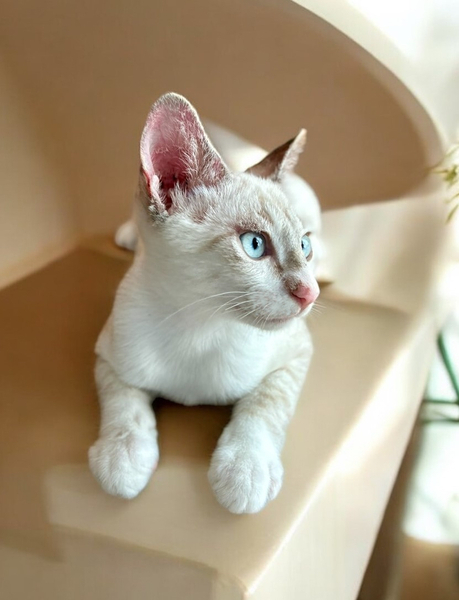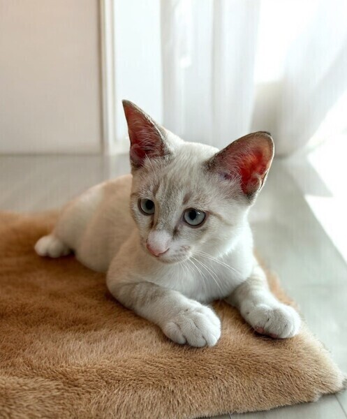 | 特徴(性格など) | 日に日に格好よくなっていくミトちゃん★ 保護したその日からヘソ天で眠るくらい、警戒心ゼロ(≧▽≦) お膝でゴロゴロするのも大好きですが、ひとり遊びも上手です。 2週間の隔離期間は、サークルでボールや蹴りぐるみで静かに遊んでいました。 シャム系によくある青い瞳にやや寄り目な感じが可愛いです❤ 猫さんとの距離感があまり上手くつかめません。 ミトくんをひとり大切にして下さる方を待っています❤ |