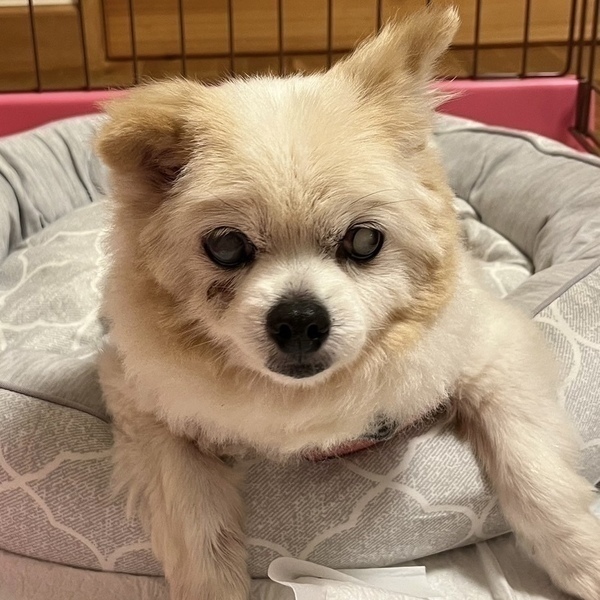 | 特徴(性格など) | 性格・特徴 【性格】 優しくなでられるのが大好きで、なでてほしいときは体をスリスリして甘えてくれます。 他犬とも落ち着いて接することができます。 ひなたぼっこしたり、お気に入りのベッドで眠ったりして、日々のんびり過ごしています。 ゆうゆうちゃんのペースでゆっくり仲良くなってください。 【ご飯】 消化器サポートフード30gを、1日2回食べています。 フードは療法食が必要な場合以外は、シュプレモでお願いします。 【お散歩】 お散歩は大好きです。 好奇心旺盛で、色々なものの匂いをかぎながらトコトコ歩きます。 迷子札は、首輪に刻印式のIDカラーで装着して頂く事と、ダブルフック型ショルダーリード使用のお約束を お願いします。 【トイレ】 トイレシートの認識が少しあります。引き続き、トレーニングをお願いします。 トレーニングのご相談は承り、アドバイスさせていただきます。 【お留守番】 サークルでお留守番できます。 (ソフトサークルは禁止とさせていただきます) 健康状態 ※ 医療に関しまして、当会では、里親様にお繋ぎするまでに、検査や手術、治療等のレスキュー団体で出来る最大限の努力の上で譲渡活動を行っております。ご理解頂ける方のみご応募ください。 名前 ゆうゆうちゃん 犬種 ポメラニアン 年齢 15歳 性別 女の子 体温 38.2度 体重 3.56kg 口腔 シニアのため麻酔のリスクを考慮し外科治療は見合わせました 眼 両目白内障 膝蓋骨脱臼 左右グレード4 (現在日常生活に支障ありません) 心雑音 1/6~2/6 避妊手術 シニアのため見合わせました 血液検査 異常なし フィラリア 検査済み レントゲン 心臓やや大きめ 胸骨及び肋骨に変形 検便検査 異常なし ノミダニ予防 済み ワクチン 接種済み 虫下薬 投薬済み(2024.6.21) 狂犬病予防注射 接種済み 畜犬登録 済み 【特記事項】 2024.9.11 咳症状のため受診 胸骨及び肋骨の変形のためエコー検査困難でしたが、心臓についての積極的な治療を要する状態ではなく気管支も異常は見られませんでした。 慢性的な肺炎からの咳を疑い、抗生剤の注射で様子見との診断でした。 |
