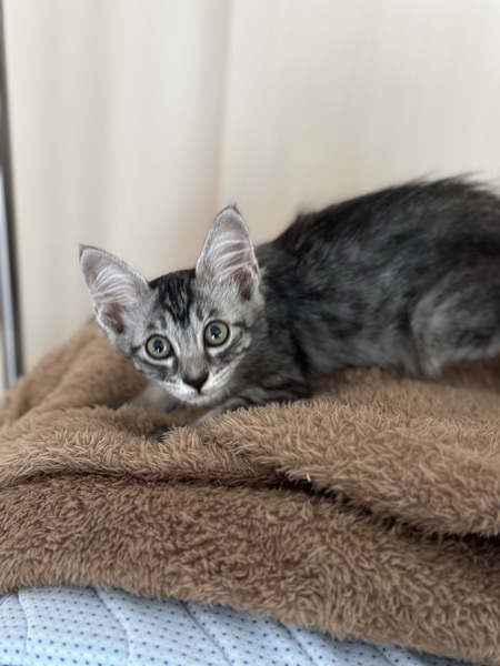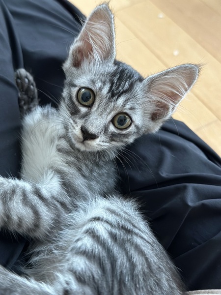 | 特徴(性格など) | グレーの少し毛が長い女の子です。 ミルクから育てています。 人が大好きです。 |