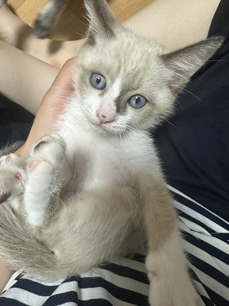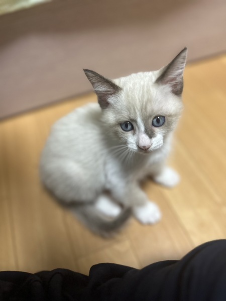 | 特徴(性格など) | シャム系で目がブルーの男の子です。 ミルクから育ててるので人馴れしています。 |