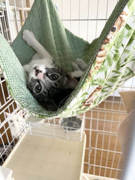 | 里親募集する理由 | ・個人でできる範囲で保護猫活動を しています。 ・空き家の草むらで兄弟3匹を保護。 生後2週齢くらいでミルクから育て ました。 |